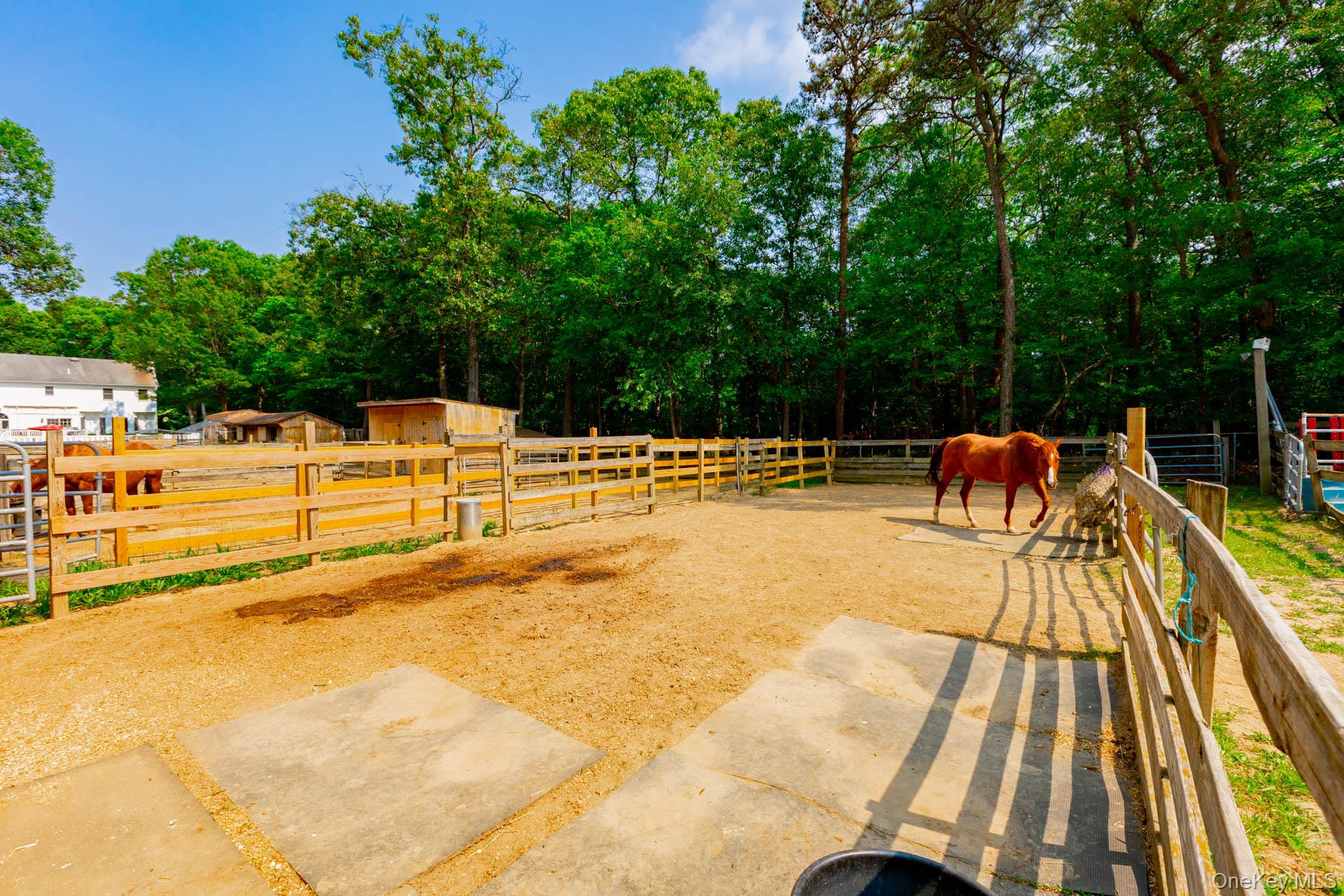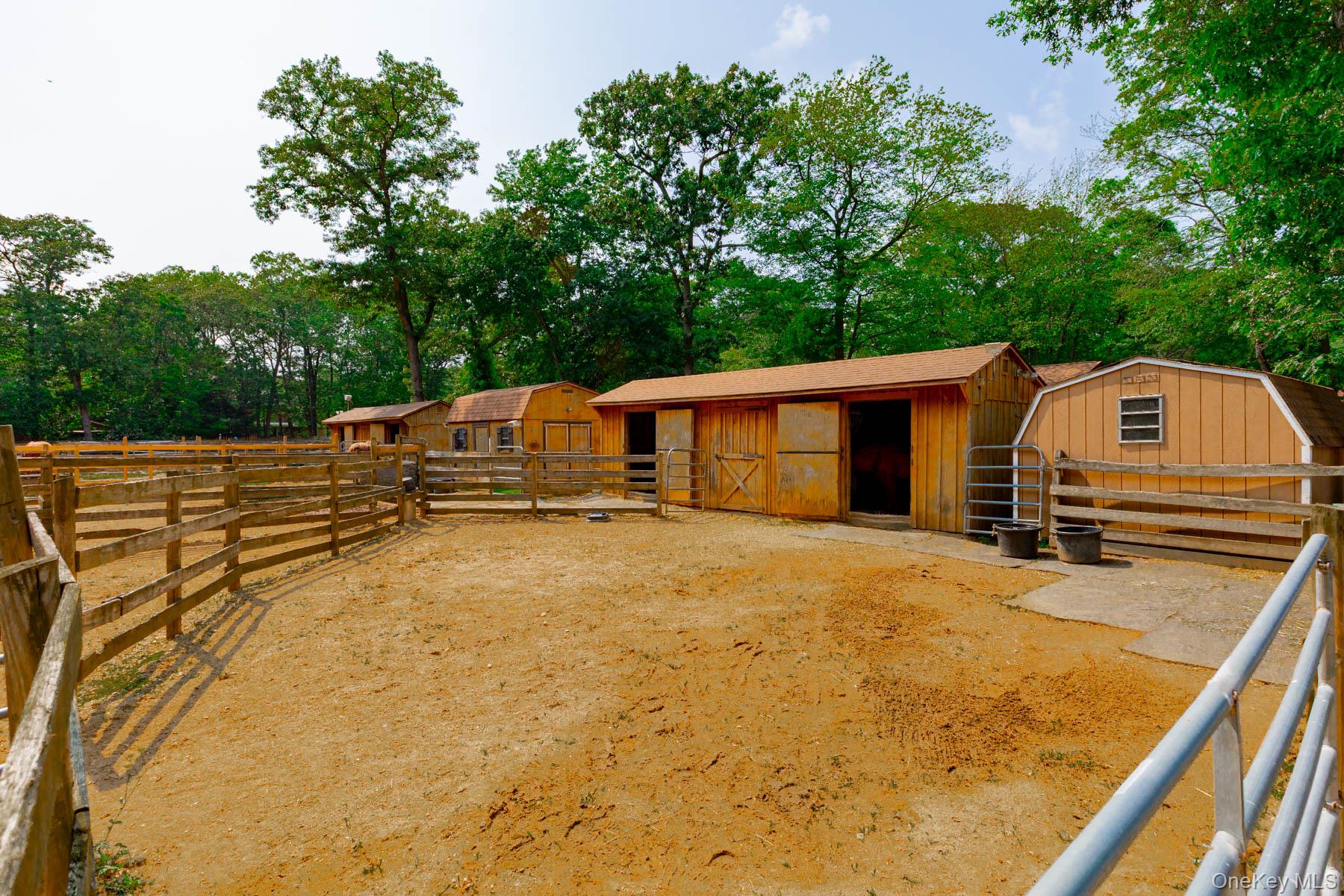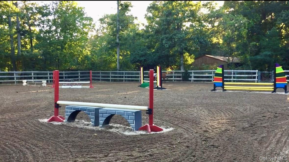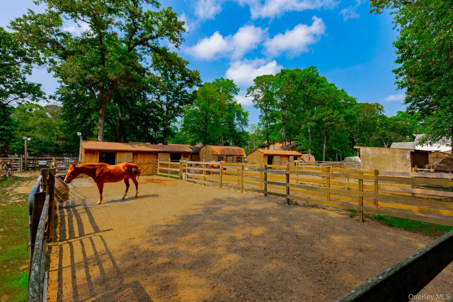 Welcome to 44 Croft Lane located in the Smithtown Pines section of Smithtown! A stunning Colonial built in 1999, ideally situated on 1.35 Acres in the heart of horse country. This exceptional property is adjacent to Byldenburgh Park, offering direct access to miles of scenic riding and hiking trails. Step inside to a grand 2 story foyer that leads to a formal living room and formal dining room. The spacious eat in kitchen features stainless steel appliances, a butlers pantry, and flows into a cozy den that is perfect for relaxing or entertaining. Additional 1st floor highlights include a laundry room, mudroom and powder room. The Expansive primary ensuite includes walk in closets ,a full bath, and a large bonus room ideal for a home office or nursery. Two additional generously sized bedrooms and a full bath complete the 2nd floor. Hardwood floors run throughout, and storage is abundant with tons of closets. The full finished basement provides flexible guest space or recreational areas. Additional features include a 2 car garage, 4 zone oil heat, 2 zone central air, and 6 zone in ground sprinklers. Enjoy Summer in the beautiful 18X36 heated salt water pool surrounded by paver patio all within a fully fenced yard. This unique equestrian property is zoned for 3 horses with each stall offering in and out paddocks, heated Nelson automatic waterer's, a 100X110 lit sand riding arena with new footing, a tack room, 4 ton hay barn, wash stall with hot water, and 4 new frost free hydrants. Updates include Brand new roof, gutters, shutters and storm doors installed August 2025. True taxes $21,953. This is the one you have been waiting for!~