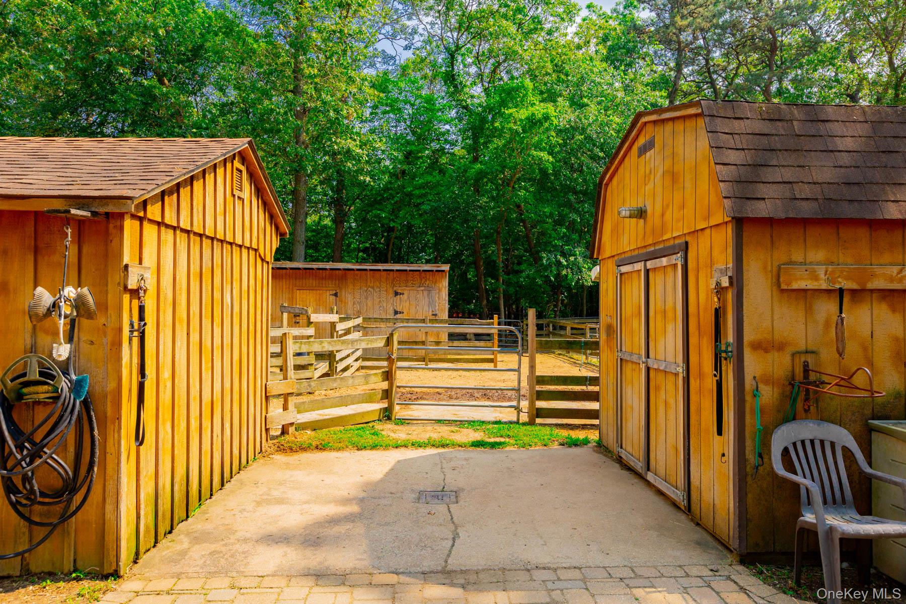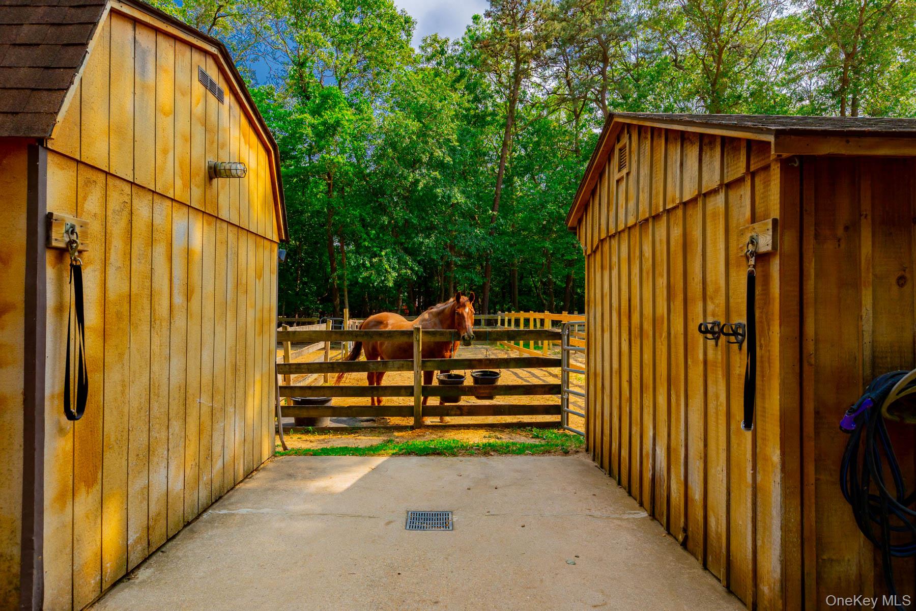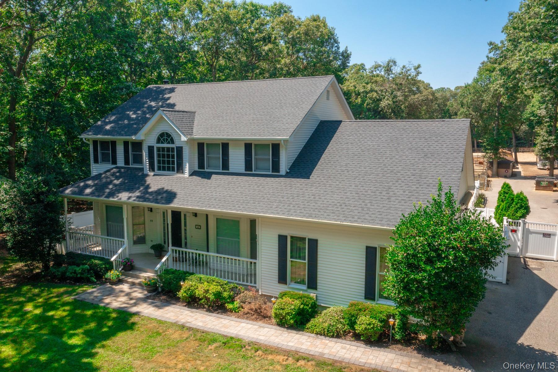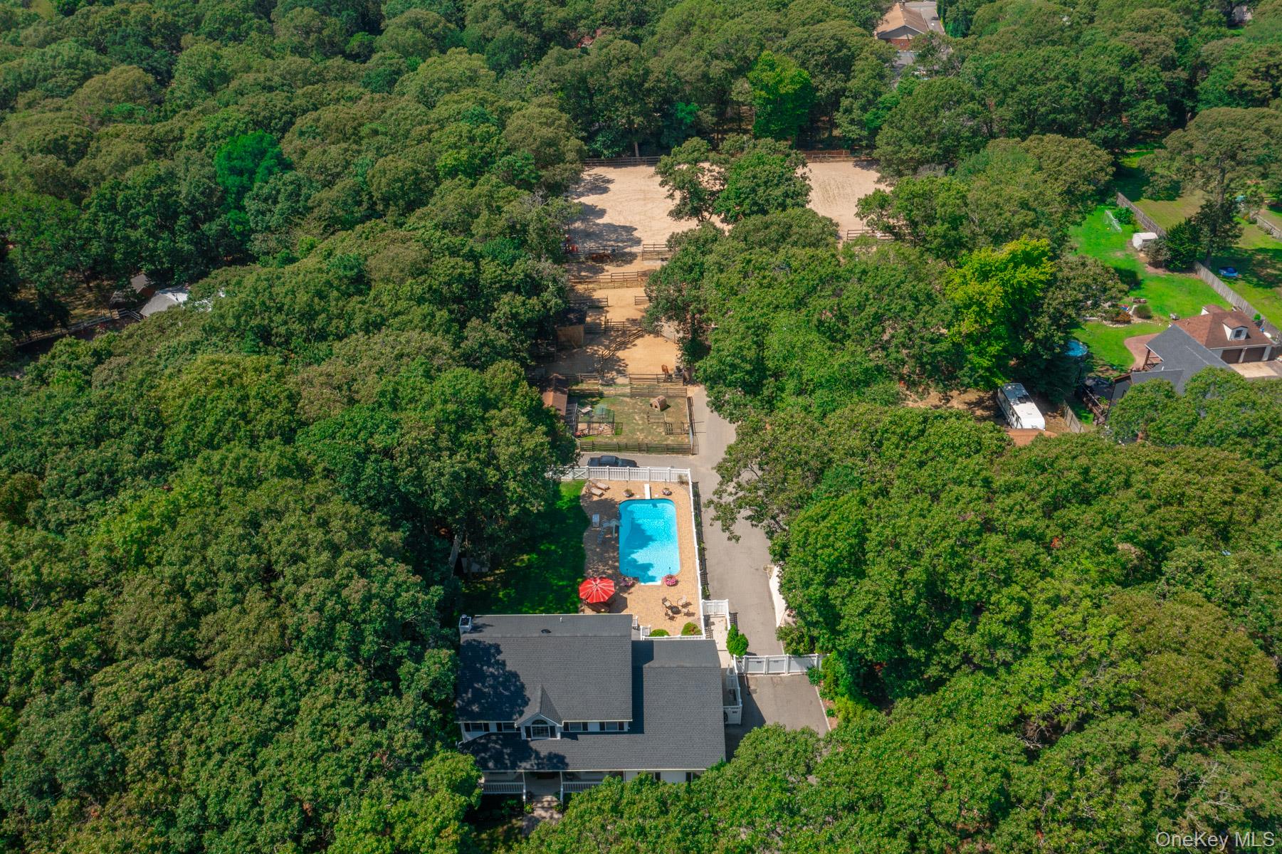 Welcome to 44 Croft Lane located in the Smithtown Pines section of Smithtown! A stunning Colonial built in 1999, ideally situated on 1.35 Acres in the heart of horse country. This exceptional property is adjacent to Byldenburgh Park, offering direct access to miles of scenic riding and hiking trails. Step inside to a grand 2 story foyer that leads to a formal living room and formal dining room. The spacious eat in kitchen features stainless steel appliances, a butlers pantry, and flows into a cozy den that is perfect for relaxing or entertaining. Additional 1st floor highlights include a laundry room, mudroom and powder room. The Expansive primary ensuite includes walk in closets ,a full bath, and a large bonus room ideal for a home office or nursery. Two additional generously sized bedrooms and a full bath complete the 2nd floor. Hardwood floors run throughout, and storage is abundant with tons of closets. The full finished basement provides flexible guest space or recreational areas. Additional features include a 2 car garage, 4 zone oil heat, 2 zone central air, and 6 zone in ground sprinklers. Enjoy Summer in the beautiful 18X36 heated salt water pool surrounded by paver patio all within a fully fenced yard. This unique equestrian property is zoned for 3 horses with each stall offering in and out paddocks, heated Nelson automatic waterer's, a 100X110 lit sand riding arena with new footing, a tack room, 4 ton hay barn, wash stall with hot water, and 4 new frost free hydrants. Updates include Brand new roof, gutters, shutters and storm doors installed August 2025. True taxes $21,953. This is the one you have been waiting for!~
