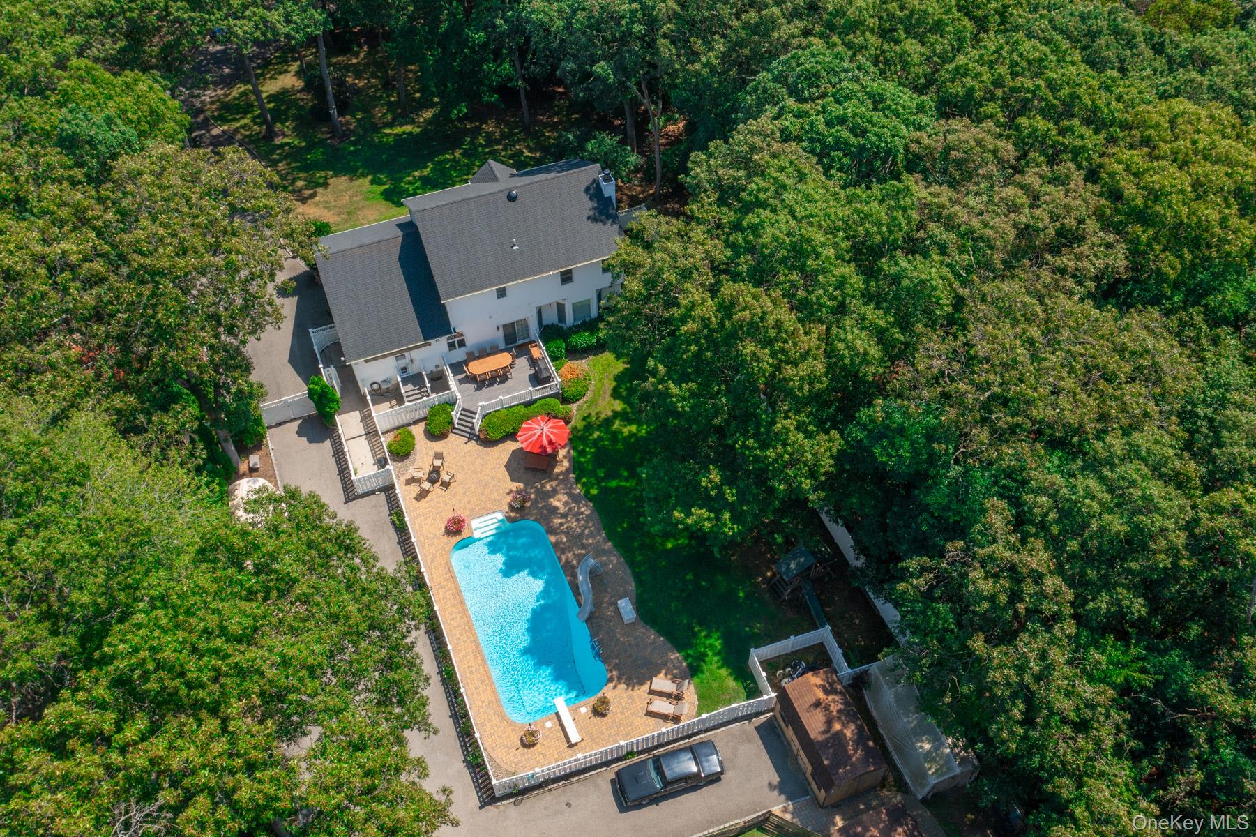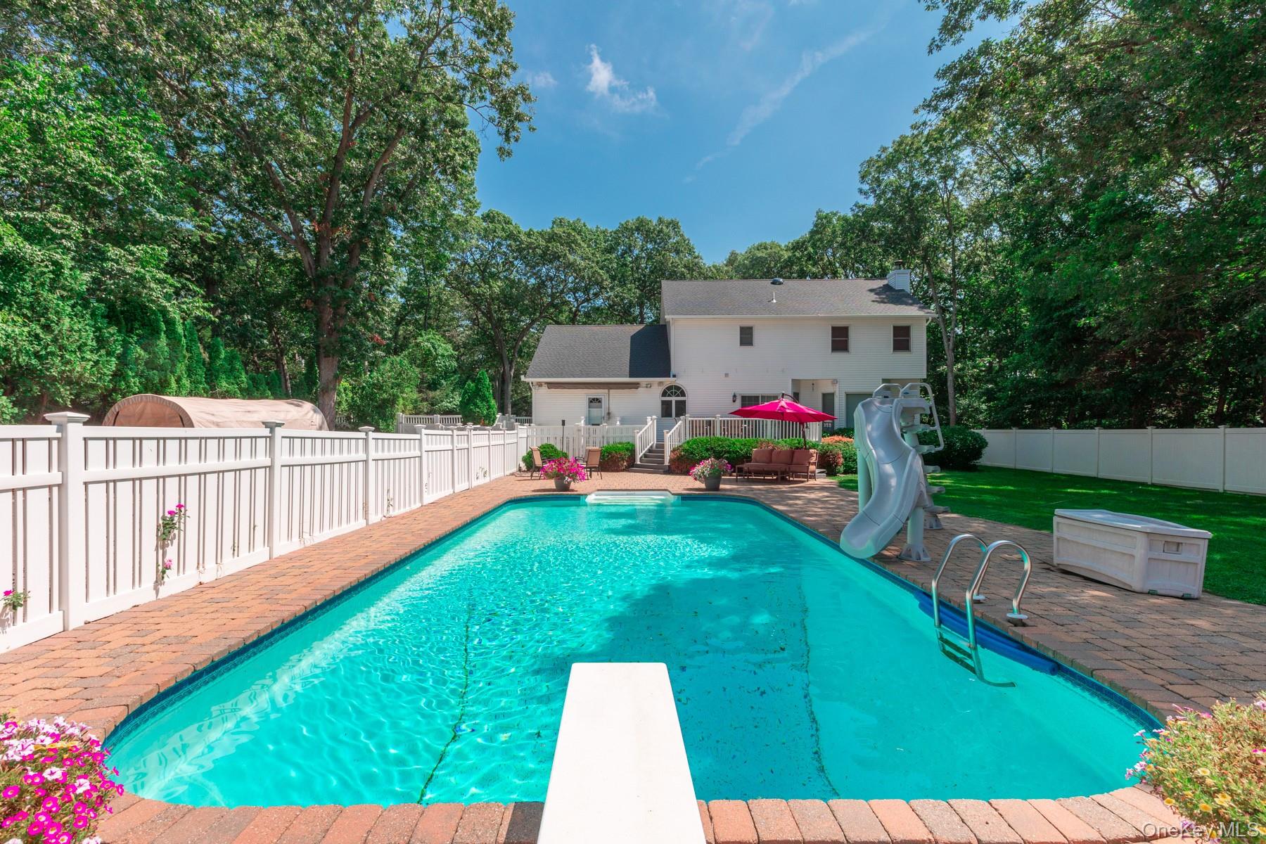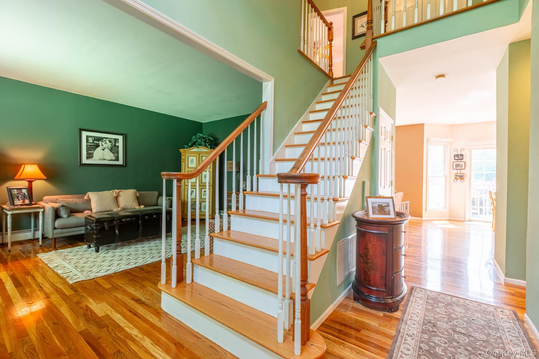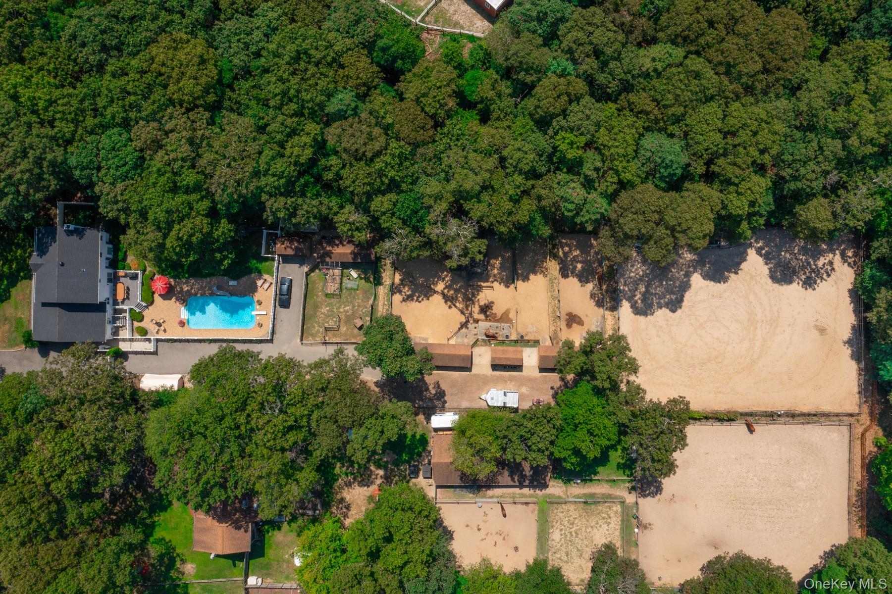 Welcome to 44 Croft Lane located in the Smithtown Pines section of Smithtown! A stunning Colonial built in 1999, ideally situated on 1.35 Acres in the heart of horse country. This exceptional property is adjacent to Byldenburgh Park, offering direct access to miles of scenic riding and hiking trails. Step inside to a grand 2 story foyer that leads to a formal living room and formal dining room. The spacious eat in kitchen features stainless steel appliances, a butlers pantry, and flows into a cozy den that is perfect for relaxing or entertaining. Additional 1st floor highlights include a laundry room, mudroom and powder room. The Expansive primary ensuite includes walk in closets ,a full bath, and a large bonus room ideal for a home office or nursery. Two additional generously sized bedrooms and a full bath complete the 2nd floor. Hardwood floors run throughout, and storage is abundant with tons of closets. The full finished basement provides flexible guest space or recreational areas. Additional features include a 2 car garage, 4 zone oil heat, 2 zone central air, and 6 zone in ground sprinklers. Enjoy Summer in the beautiful 18X36 heated salt water pool surrounded by paver patio all within a fully fenced yard. This unique equestrian property is zoned for 3 horses with each stall offering in and out paddocks, heated Nelson automatic waterer's, a 100X110 lit sand riding arena with new footing, a tack room, 4 ton hay barn, wash stall with hot water, and 4 new frost free hydrants. Updates include Brand new roof, gutters, shutters and storm doors installed August 2025. True taxes $21,953. This is the one you have been waiting for!~